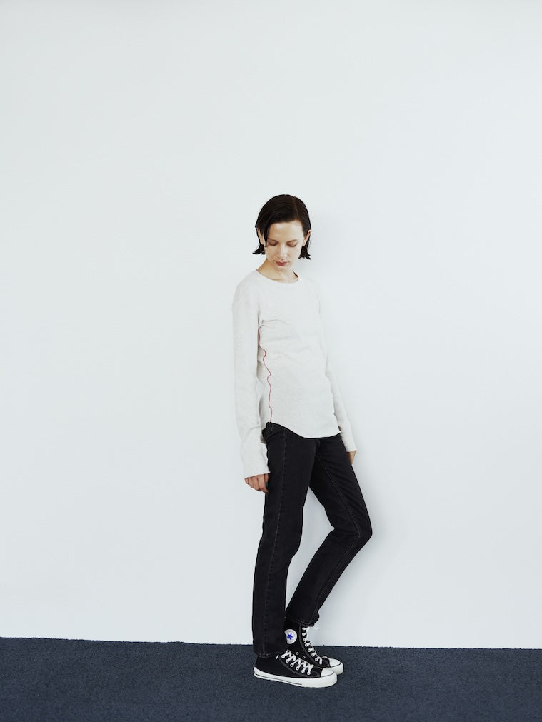 シルエットはややハイウエストで腰回りが綺麗に見え、足も長く見えるスリムストレート。