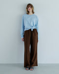 まずはシンプルにスリットが入った状態で楽しんでいただいて、次はスリット部分をギュッと結ぶと全く違った印象になります。
