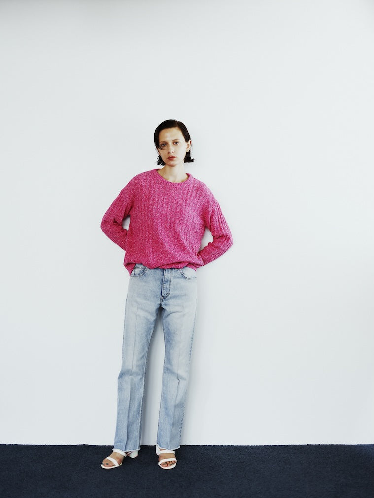 上品に着られるライトブルーとセンタープリーツが今までのデニムスタイルに変化をつけてくれます。