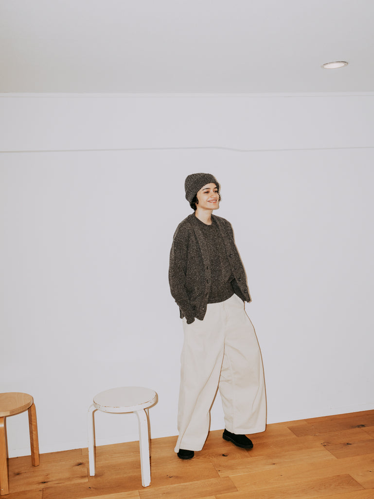 ”これぞコーデュロイ" といった趣のある太畝と上品な光沢と深みのある色が、スタイリングにグッと秋冬らしさをプラスしてくれます。その季節らしいアイテムを着る豊かさを感じられるパンツです。