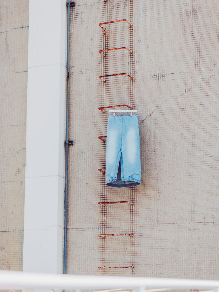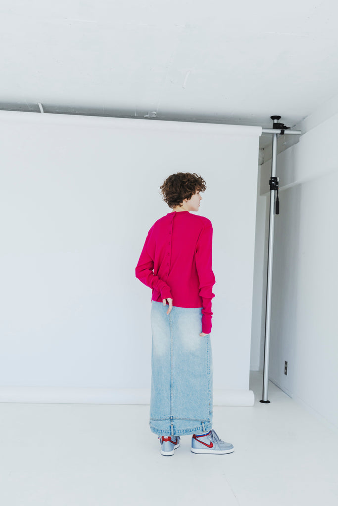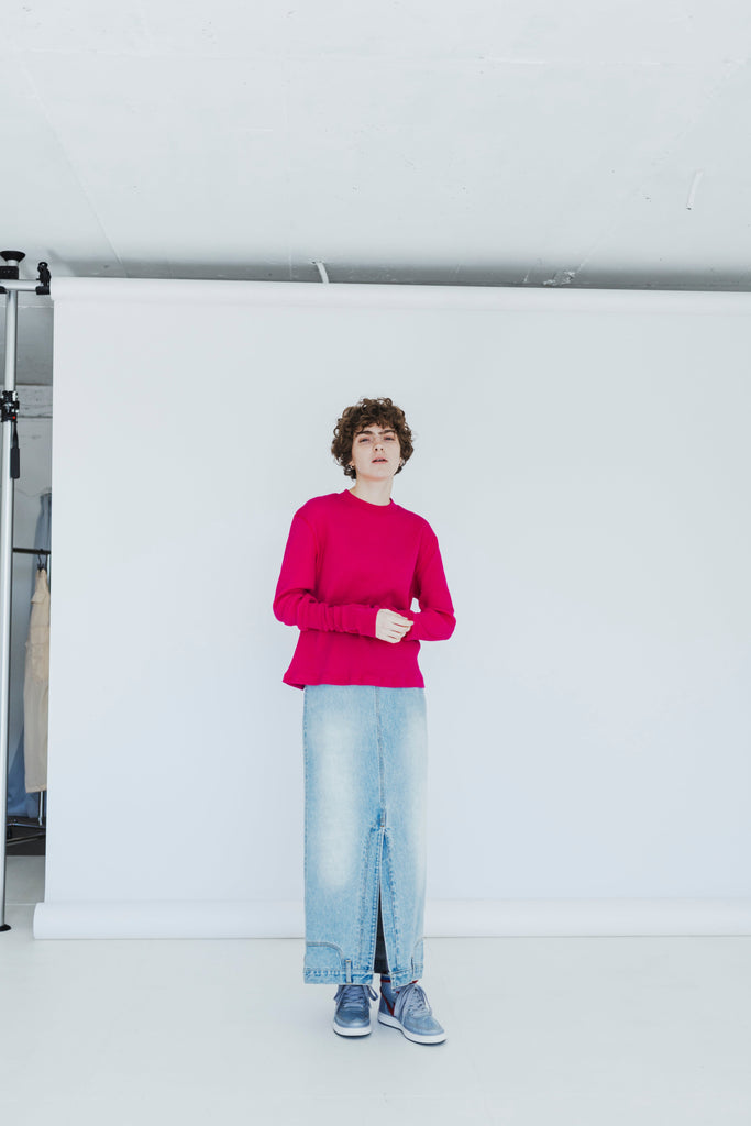 ポケットなどを含めてすべてが逆さまになったデザインも目を引きますが、身体が入った時のシルエットもとても綺麗です。