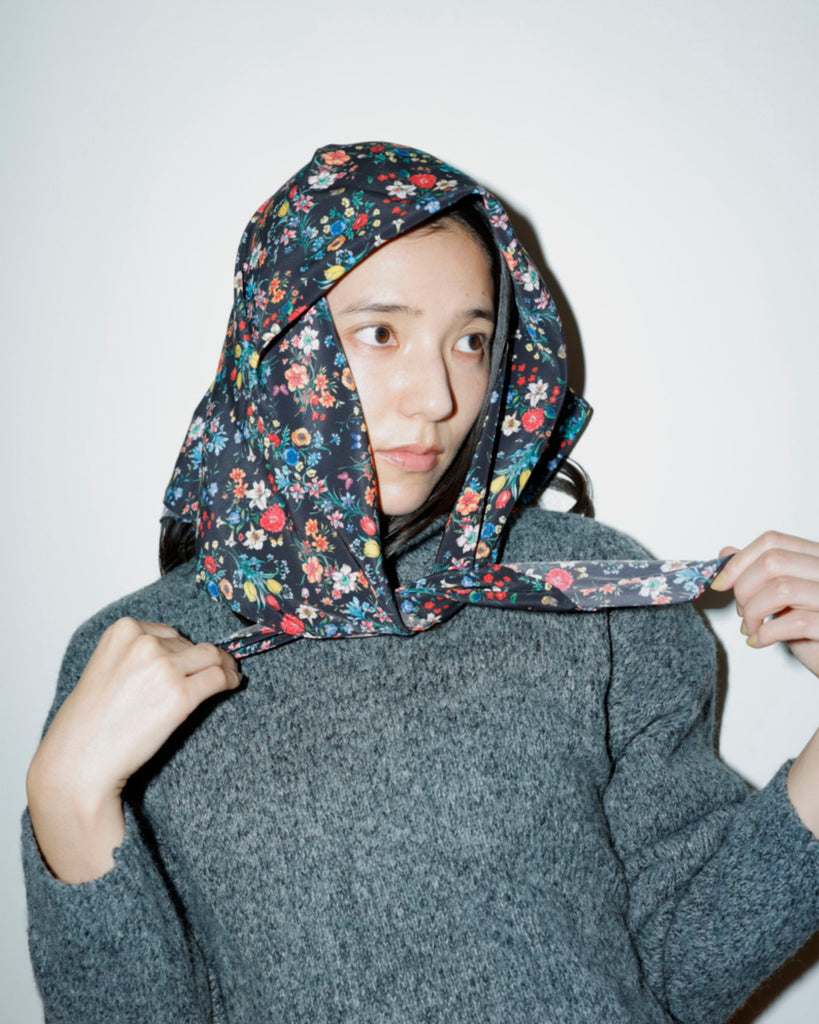 MEYAME の定番のフラワープリントシリーズにスカーフが登場。
