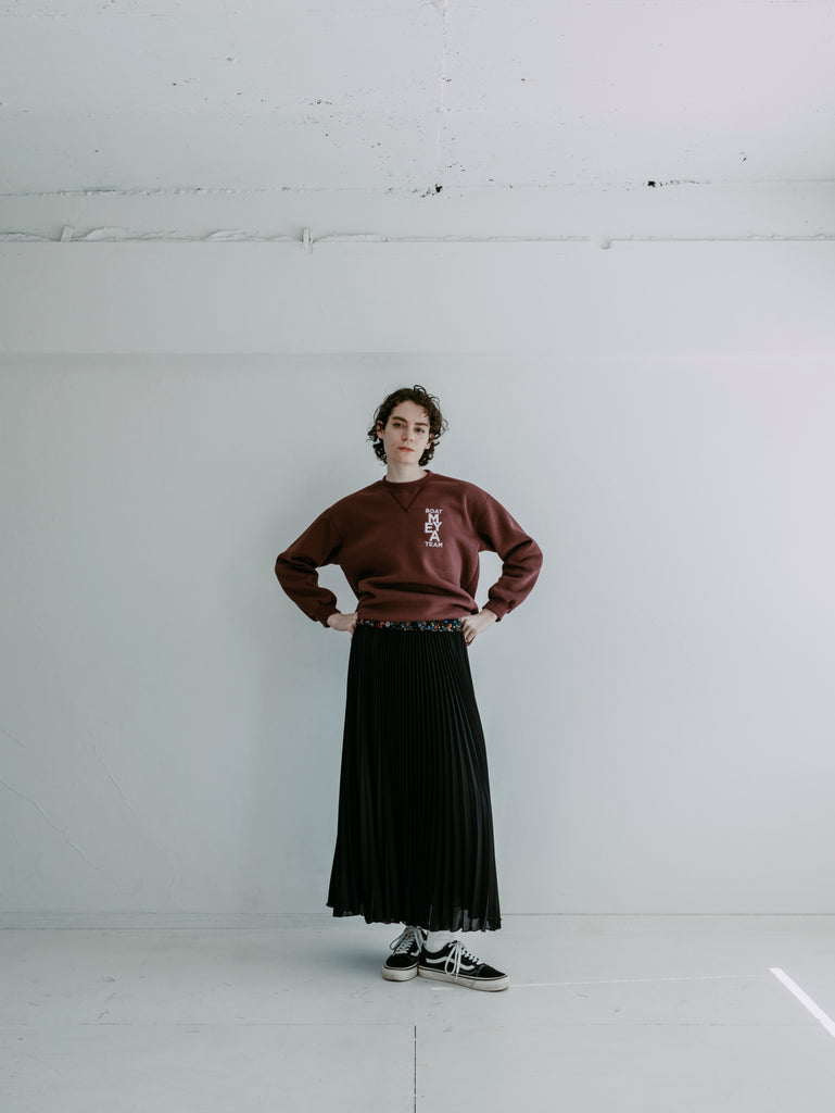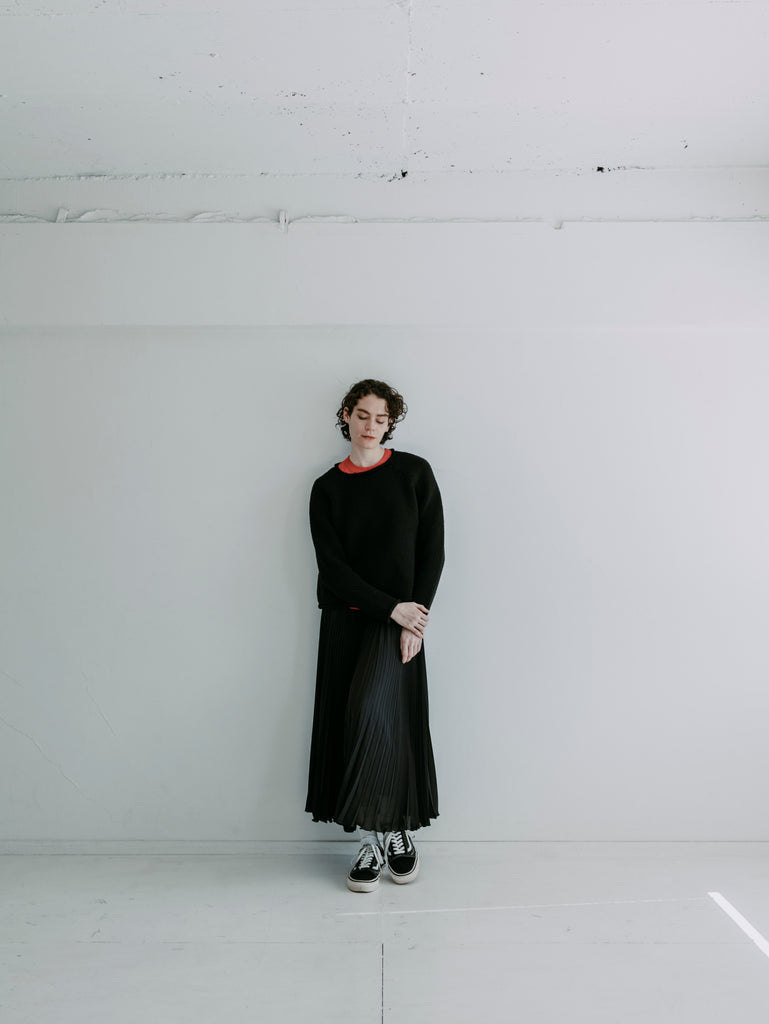 裾をメロウ始末にすることで動きが出て、綺麗なだけのプリーツスカートではない印象になっています。
