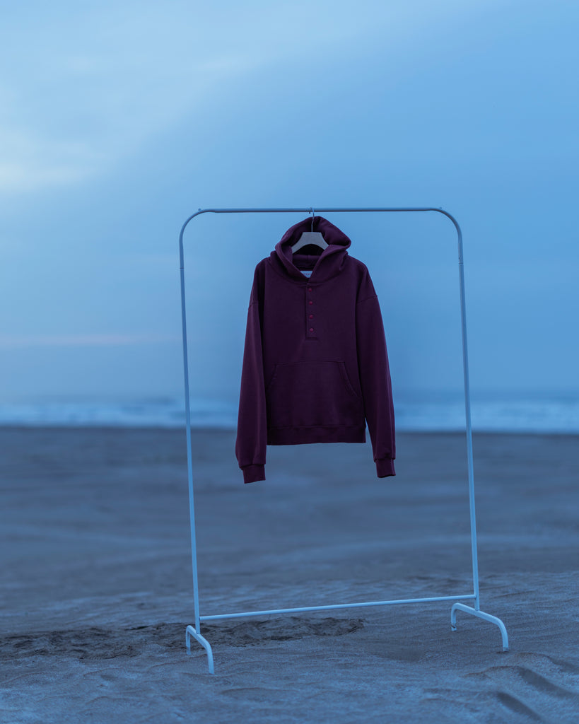 フーディーを一枚で着るのももちろん好きなのですが、重ね着を楽しめたらまた違ったスタイリングが出来るのでは思い、このハーフボタンフーディーを作りました。