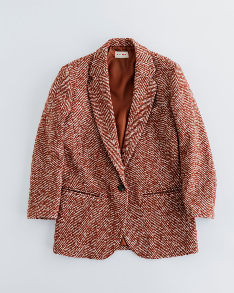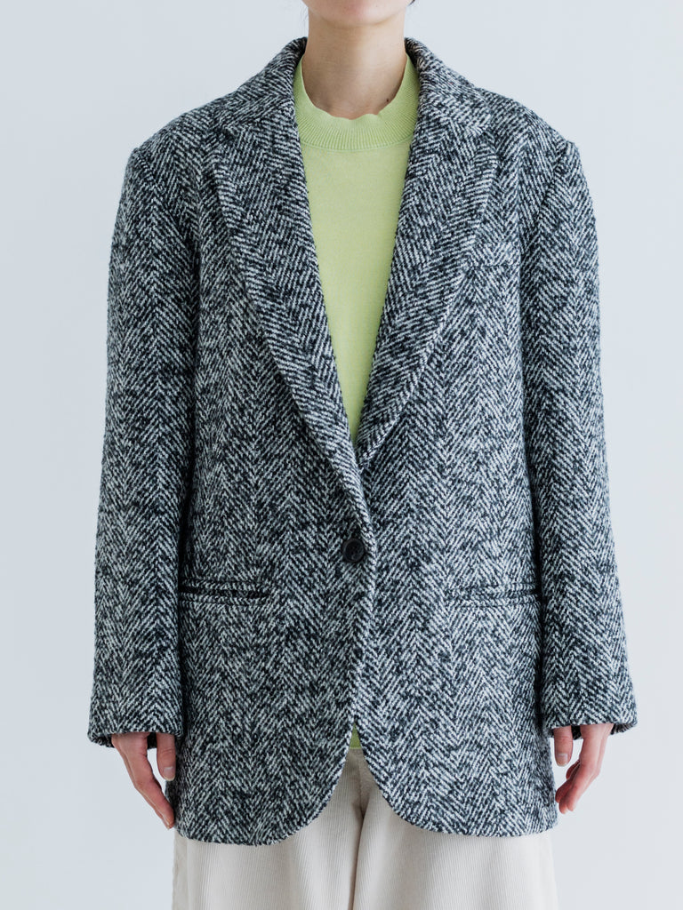 遠目は一見無地に見えるヘリンボーンの柄は上品なカジュアルさを醸し出しています。