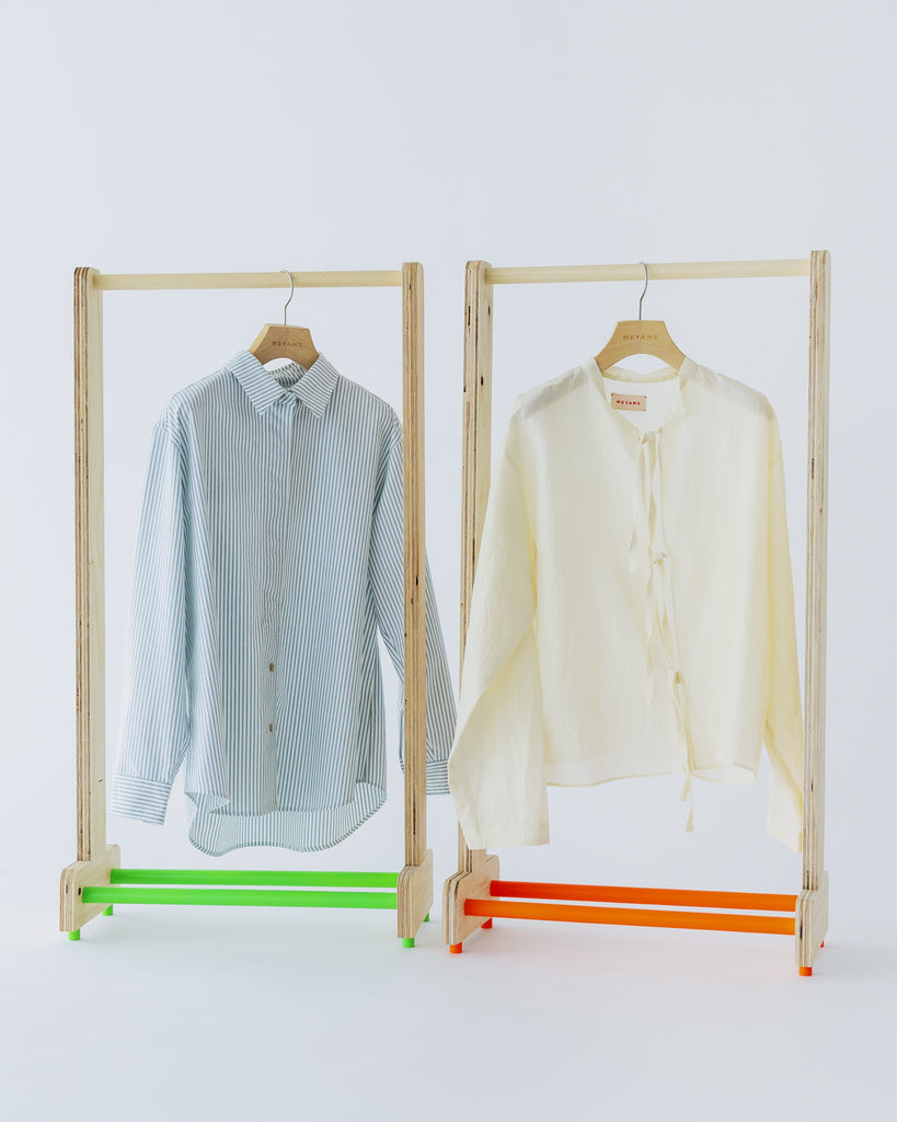 少し低めでコンパクトなハンガーラックです。T シャツやスウェットなどかけるのにちょうど良い⾼さです。