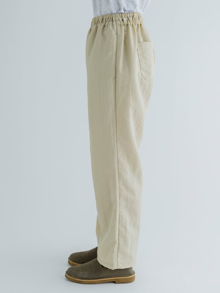 上品な光沢を持つ柔らかな質感のナイロンパンツです。