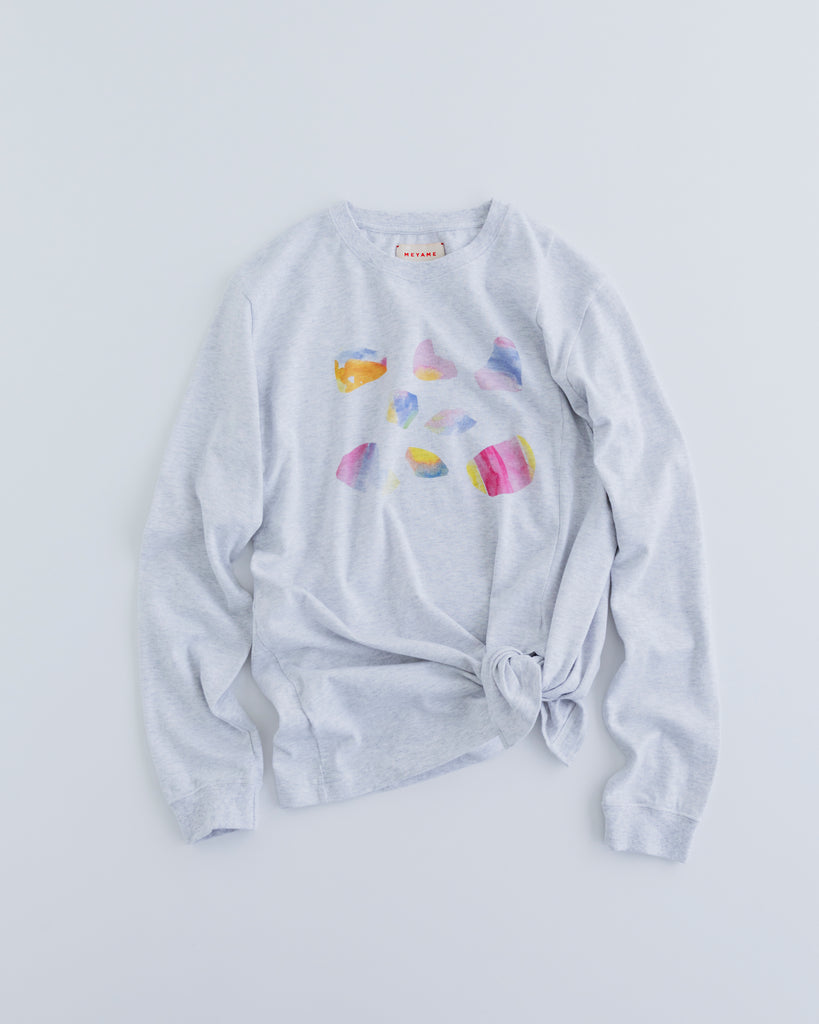 SLIT LONG SLEEVE TEE に MEYAME らしく、また春らしい綺麗な色の絵をプリントしました。