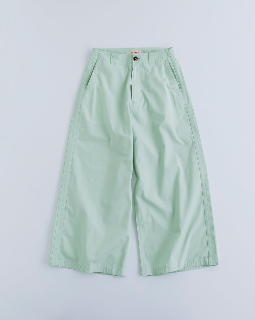 思いっきりワイドなシルエットが特徴の MEYAME の定番パンツ SIDE LINE WIDE PANTS。最近のMEYAME らしい淡いグリーンとピンクが暖かな春夏へと気分を変えてくれます。