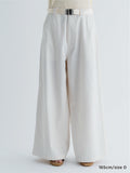 ウエストはワイドなシルエットを作るためにややゆったり目にしていますので、LIGHT BELT などベルトで調整していただくことをおすすめしています。