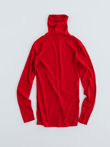 サイドと裾口の赤いステッチは重ね着をしたときのアクセントに。