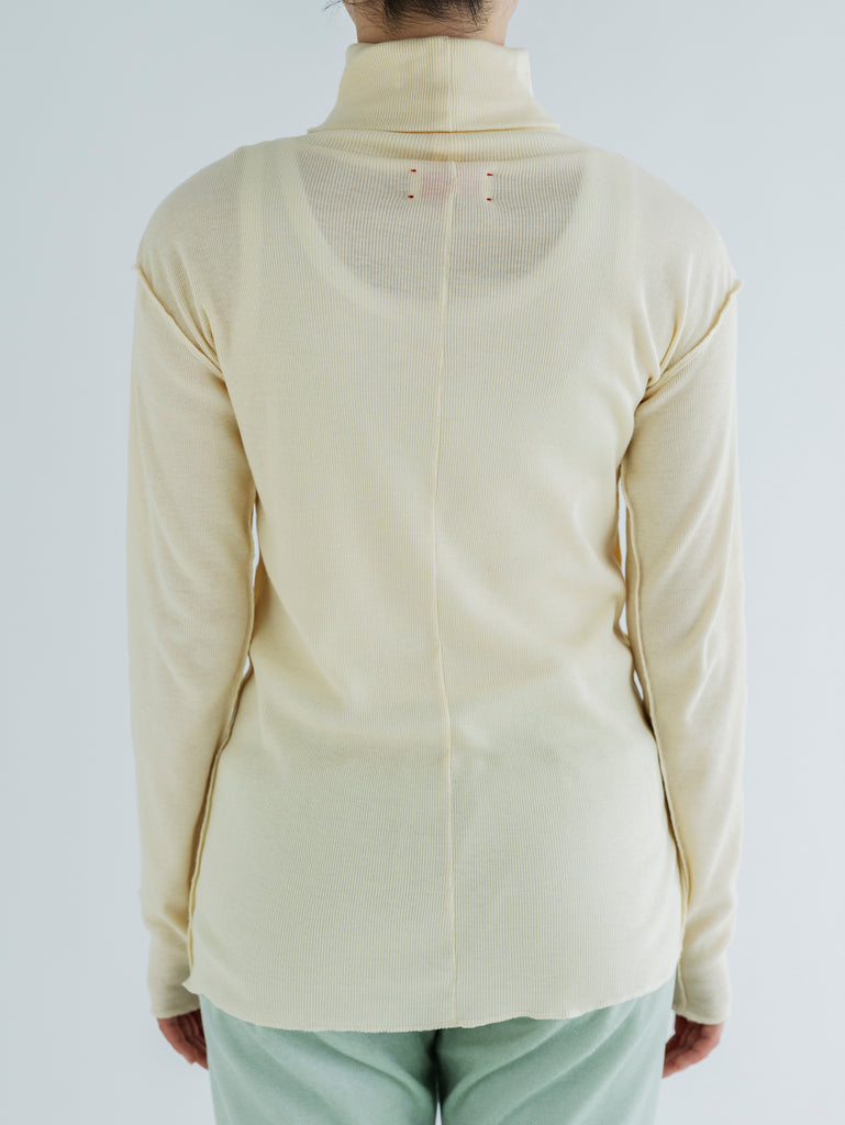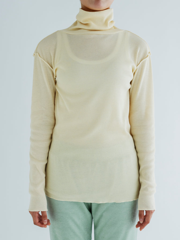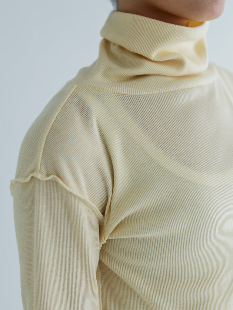 一枚でも重ね着のときにも活躍してくれる、一度着たら病みつきになる着心地の MEYAME の秋冬の定番、SOFT RIB TUTTLENECK。
