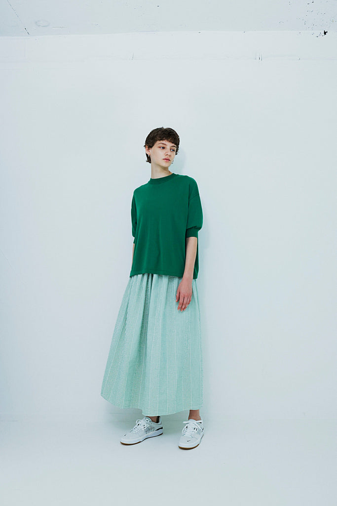夏といえば着たくなるシアサッカーで作ったボリュームたっぷりのスカート。