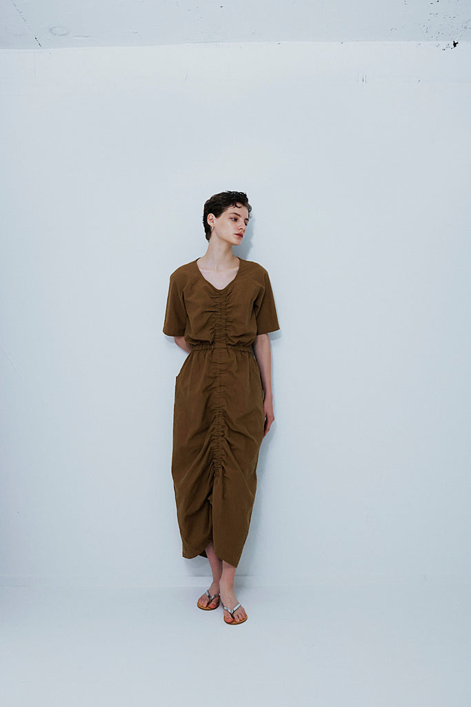 フロント部分にコードが入っていて、裾の形を自由に調節可能。