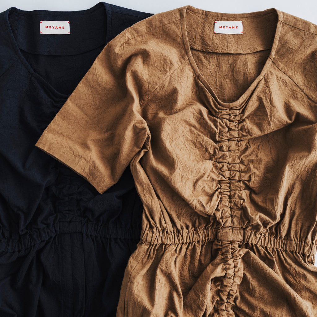 洗いをかけた凹凸のあるコットンは、肌にまとわりつかず真夏でも快適に着られます。