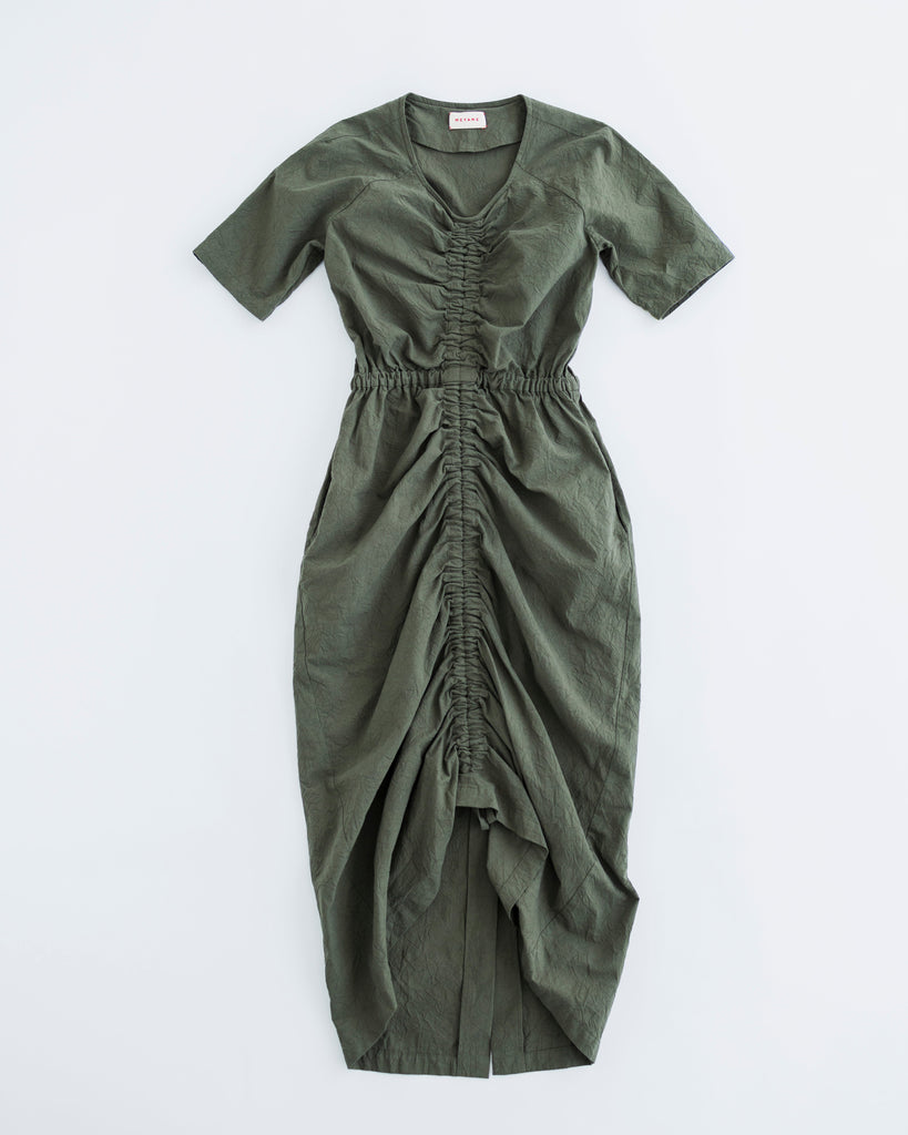 バックスタイルにスリットを入れて、足捌きも軽やか。