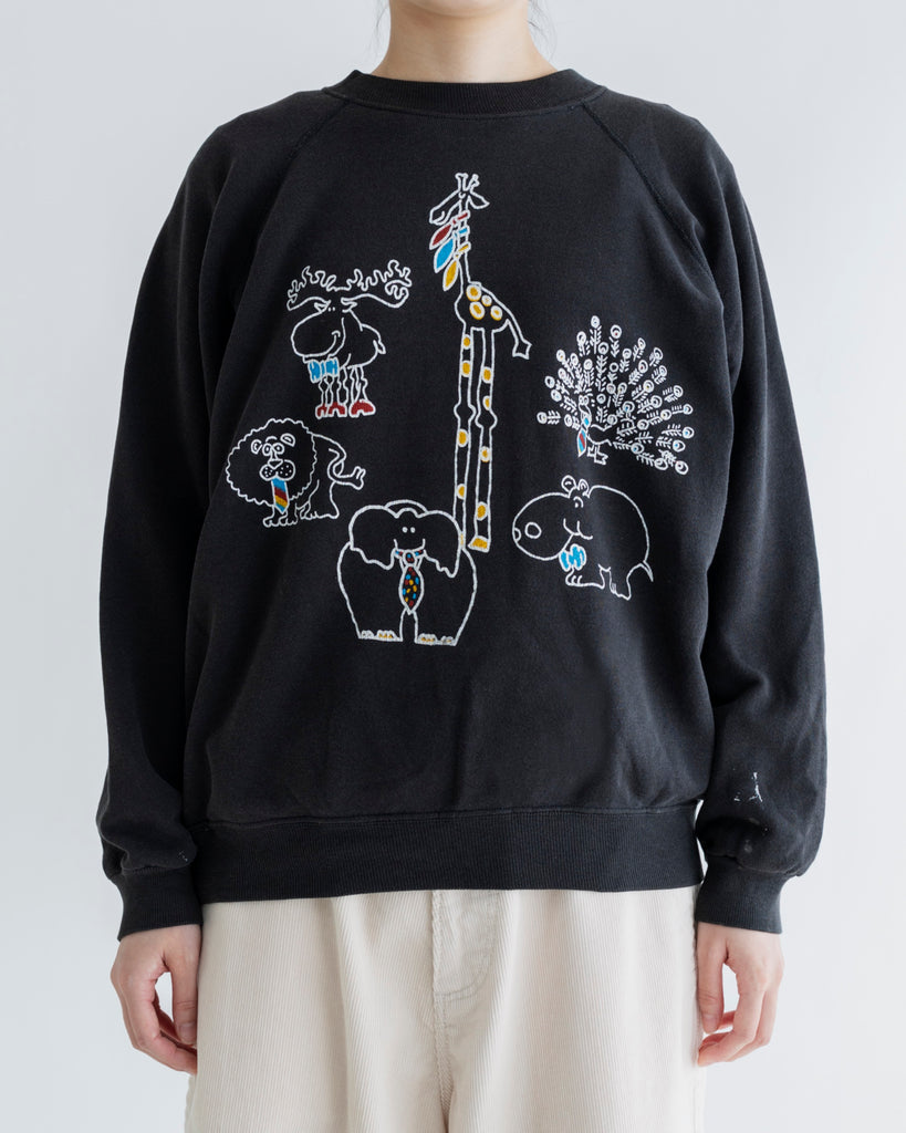 MEYAME ではプリントものをあまり作らないので、古着のスエットやTシャツはプリントものを好んで着ています。今回もプリントものをたくさん買い付けました。普段自分用に買うのと同じように年代や価値のあるなしではなく、好きかどうかを基準に選びました。