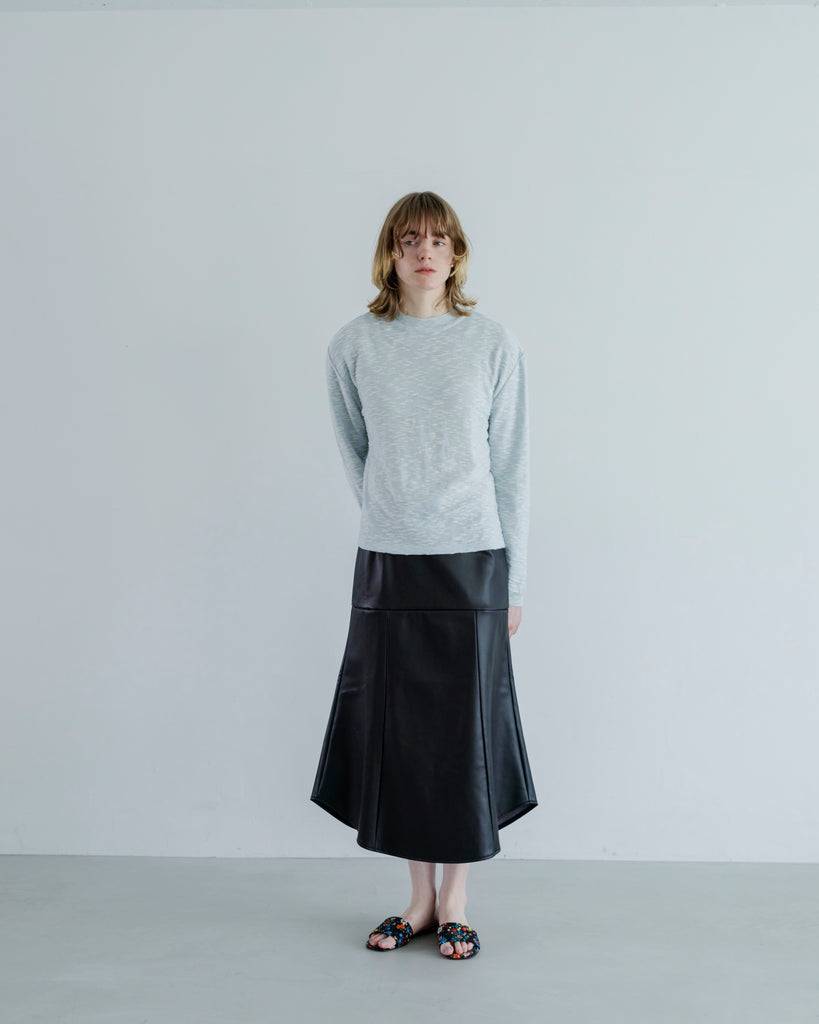 身体のラインがとても綺麗に見えるので、手前味噌ですが BEAUTIFUL SKIRT と名付けました。MEYAME の定番のスカートの形です。