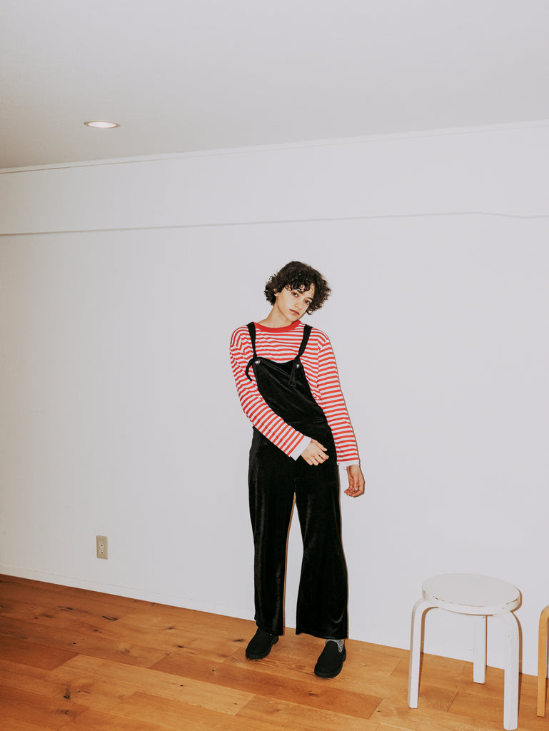 絶妙なツヤと発色の良さを持つテンセルのベロア生地をMEYAME オリジナルで作りました。伸縮性があって肌あたりもなめらかで着心地も◎。