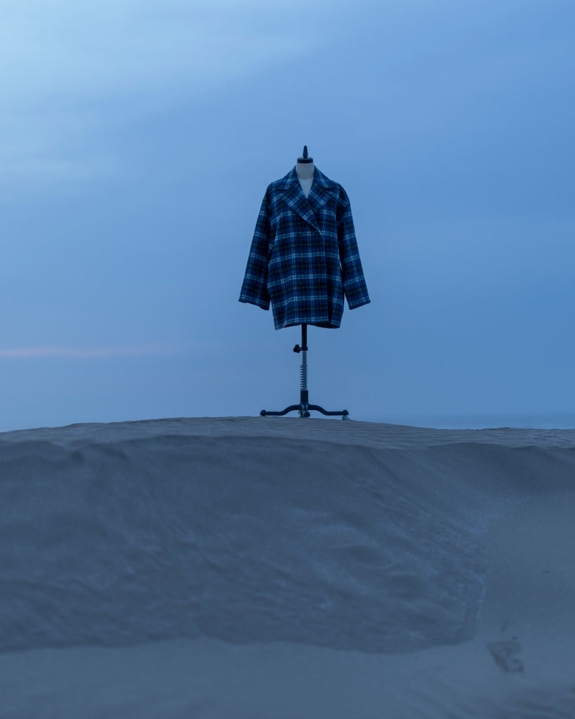 同じ形で無地の WOOL DOUBLE COAT も。