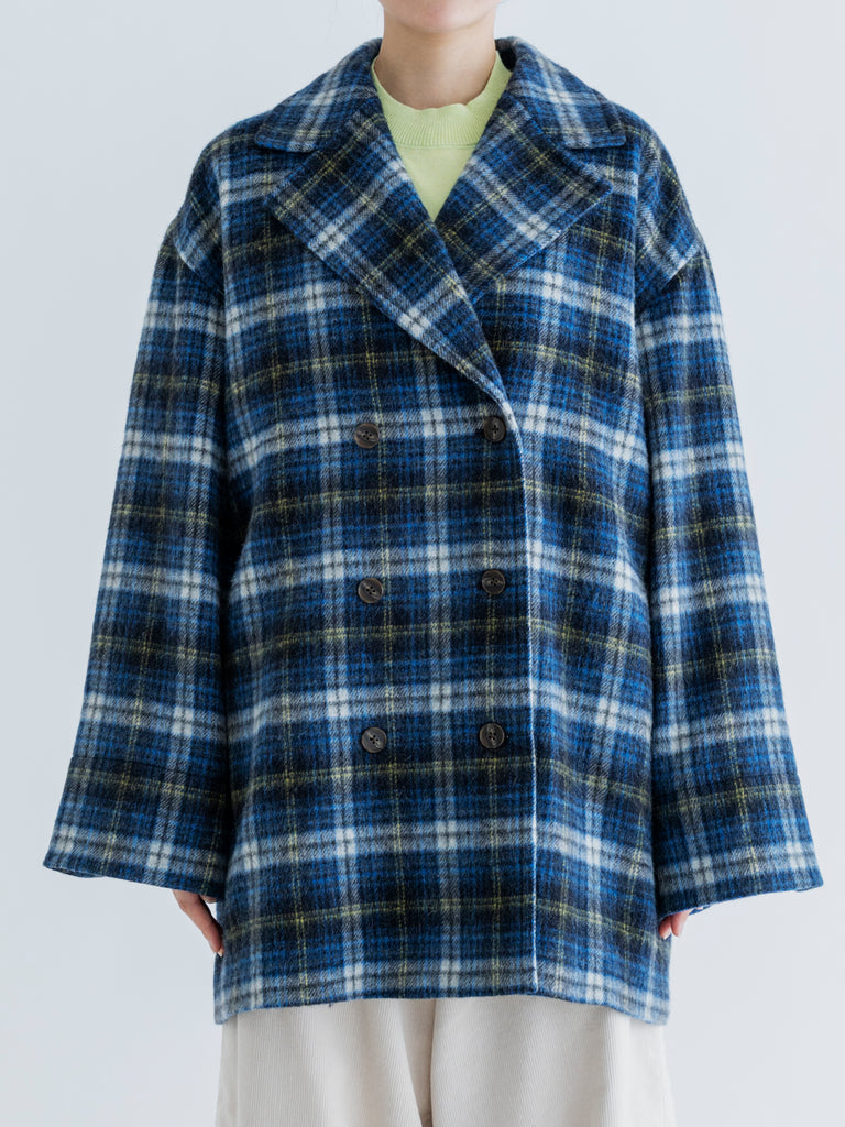 WOOL CHECK DOUBLE COAT